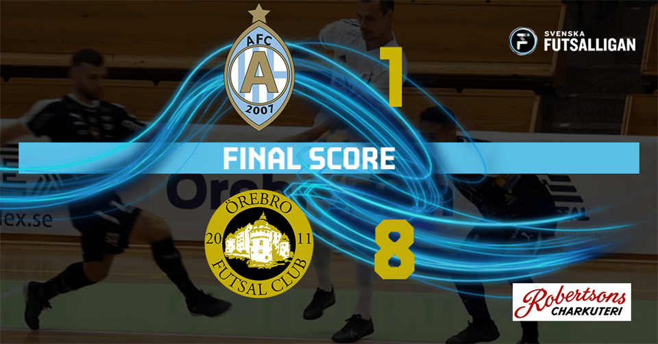 Vilken härlig bortaseger, 1-8 (1-3) och matchens gigant var Christoffer Skoog som gjorde 3 mål. Glädjande att vi spelar allt bättre och försvarsspelet börjar sitta, tillsammans med att vi blir effektivare framåt ju längre säsongen går. Efter vårt 0-3 mål började AFC spela jokerspel redan i första halvlek och framför allt Dildar Caliskan har många målchanser mot öppet mål inget vill gå in. AFC fortsätter med jokerspel i dryga 10 min i andra men vi håller tätt och kan sätta några framåt, bra jobb av hela laget. Med 4 omgångar kvar att spela parkerar vi just nu på en 8:e plats, den sista slutspelsplatsen. Vi gnuggar vidare i veckan och på söndag är det ny bortamatch, då mot Borås som ligger precis före oss i tabellen. Det blir spännande värre på slutet och ni följer oss i appen SFL-live, helt gratis. Våra målskyttar blev: Christoffer Skoog 3, Senad Berisha 2, Ignatius Malki 2 och ett självmål.