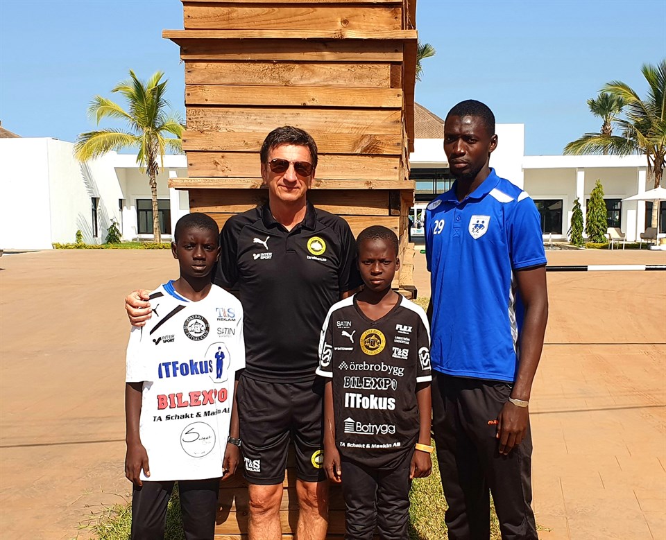 Nu känns det riktigt bra i hjärtat när jag personligen fått överlämna två gamla matchställ från herrlaget till Gilmore Football Academy i Gambia. Matchkläderna som bara legat i kartonger och tagit plats, kan nu återanvändas med stor glädje i Afrika. Coachen Momodou Bojang är väldigt tacksam och tackar Örebro Futsal Club så mycket att det blev just dem som fick kläderna, då det var många andra som ville ha dem. Spelarna Ebrima Gillen och Dawda Camara ser inte så glada ut på bilden, men lovar att det såg annorlunda när inte kameran var framme.